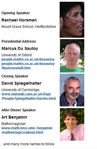 While you are waiting for the Conference details to emerge you might wish to watch a talk given by Professor John D Barrow , Professor of Mathematical Sciences at the University of Cambridge, entitled ’100 Essential Things You Didn’t Know You Didn’t Know’ wherein he explores the mathematics of everyday life.    click here